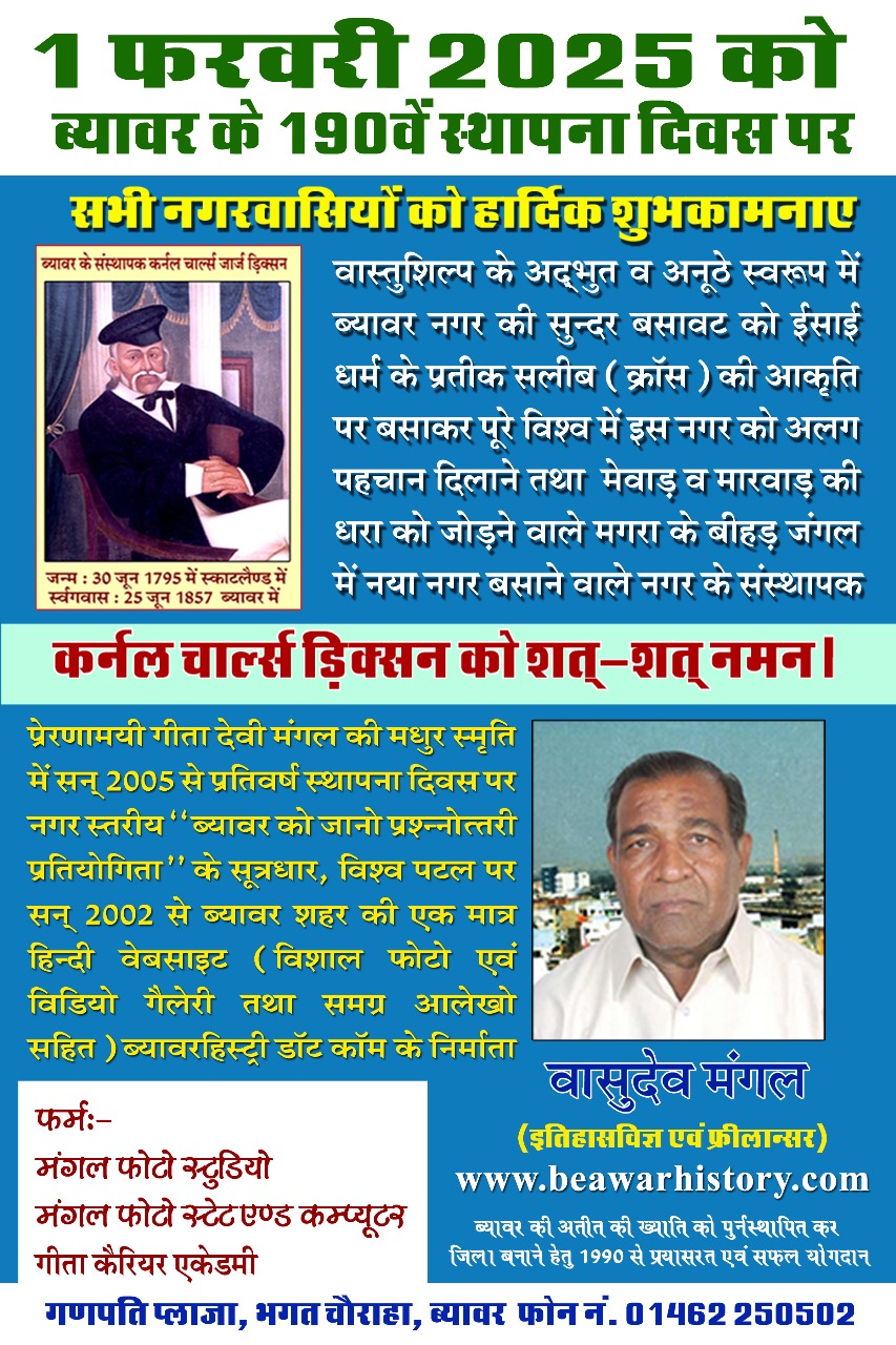 1 फरवरी को ब्यावर का 190वाँ स्थापना