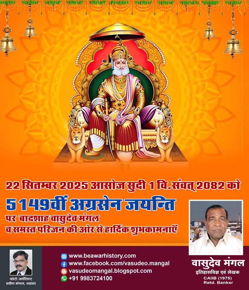 यह लेख महाराजा अधिराज श्री अग्रसेन जी महाराज की विक्रम संवत् 2070 की